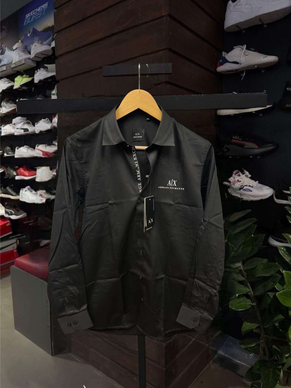 ARMANI EXCHANGE AX FRONT BUTTON PRINT BLACK SHIRT
