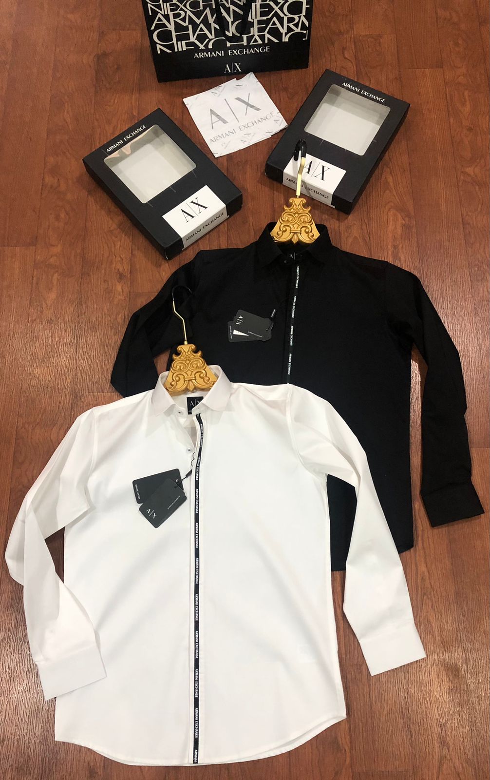ARMANI EXCHANGE AX FRONT STRIP COLLAR LOGO BLACK SHIRT