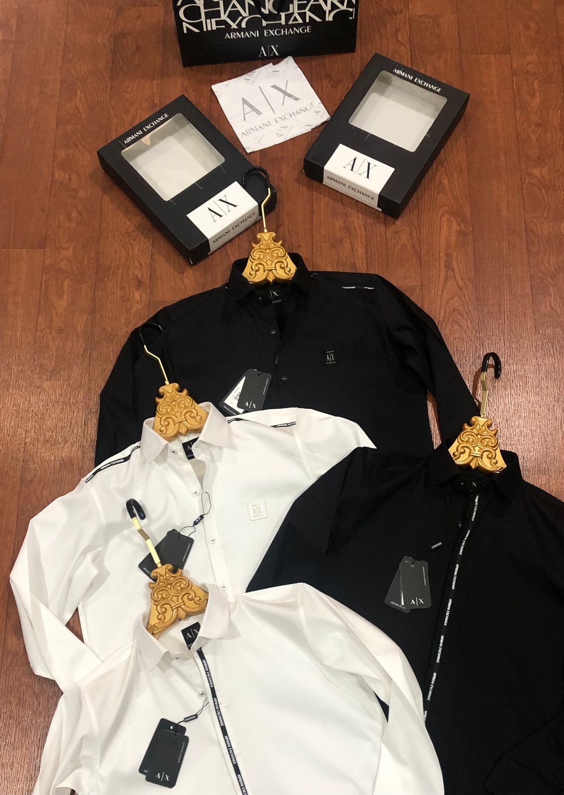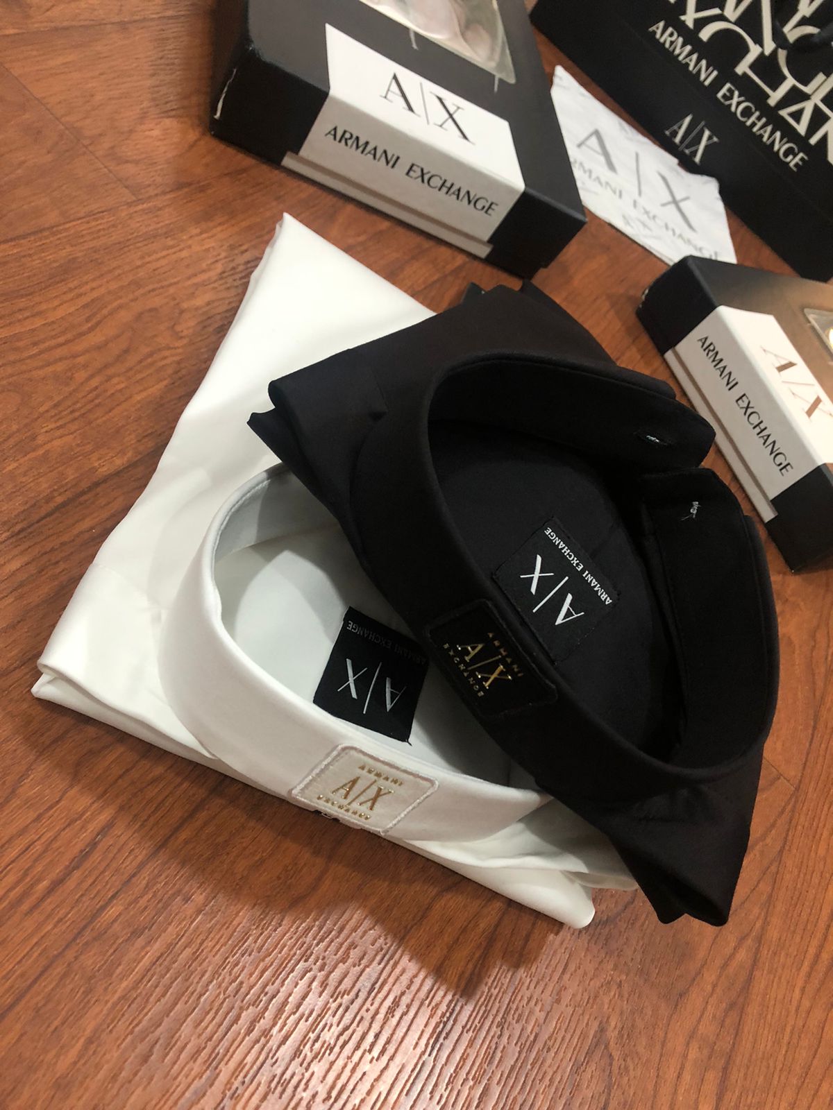 ARMANI EXCHANGE AX FRONT STRIP COLLAR LOGO WHITE SHIRT