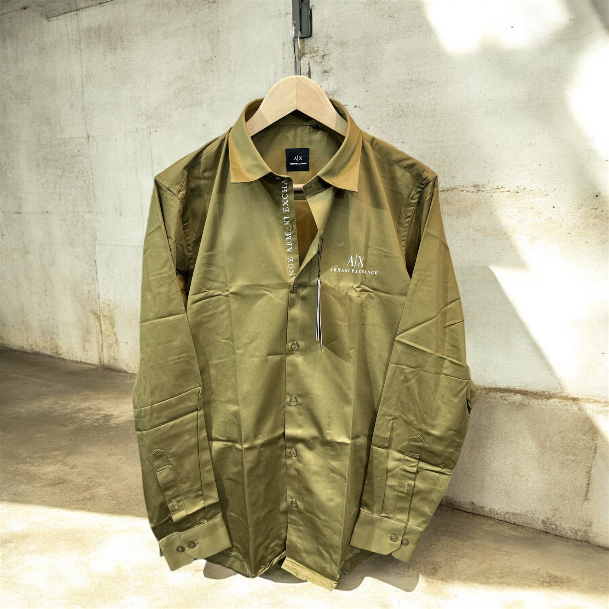 ARMANI EXCHANGE AX FRONT BUTTON PRINT LIGHT GREEN SHIRT